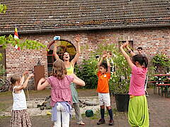 Nach dem wunderbaren Erfolg unserer ersten Yogaferien auf dem buddhistischen Pauenhof am Niederrhein bei Xanten freuen wir uns wieder mit Euch auf unsere entspannten Yogaferien für Groß und Klein.
