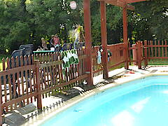 Zur sommerlichen Abkühlung gibt es einen Poolbereich mit Liegen zur Entspannung. Da der Pauenhof auf Kinder in allen Altersstufen vorbereitet ist, ist der Poolbreich abschließbar, und nur unter erwachsener Beaufsichtigung offen.